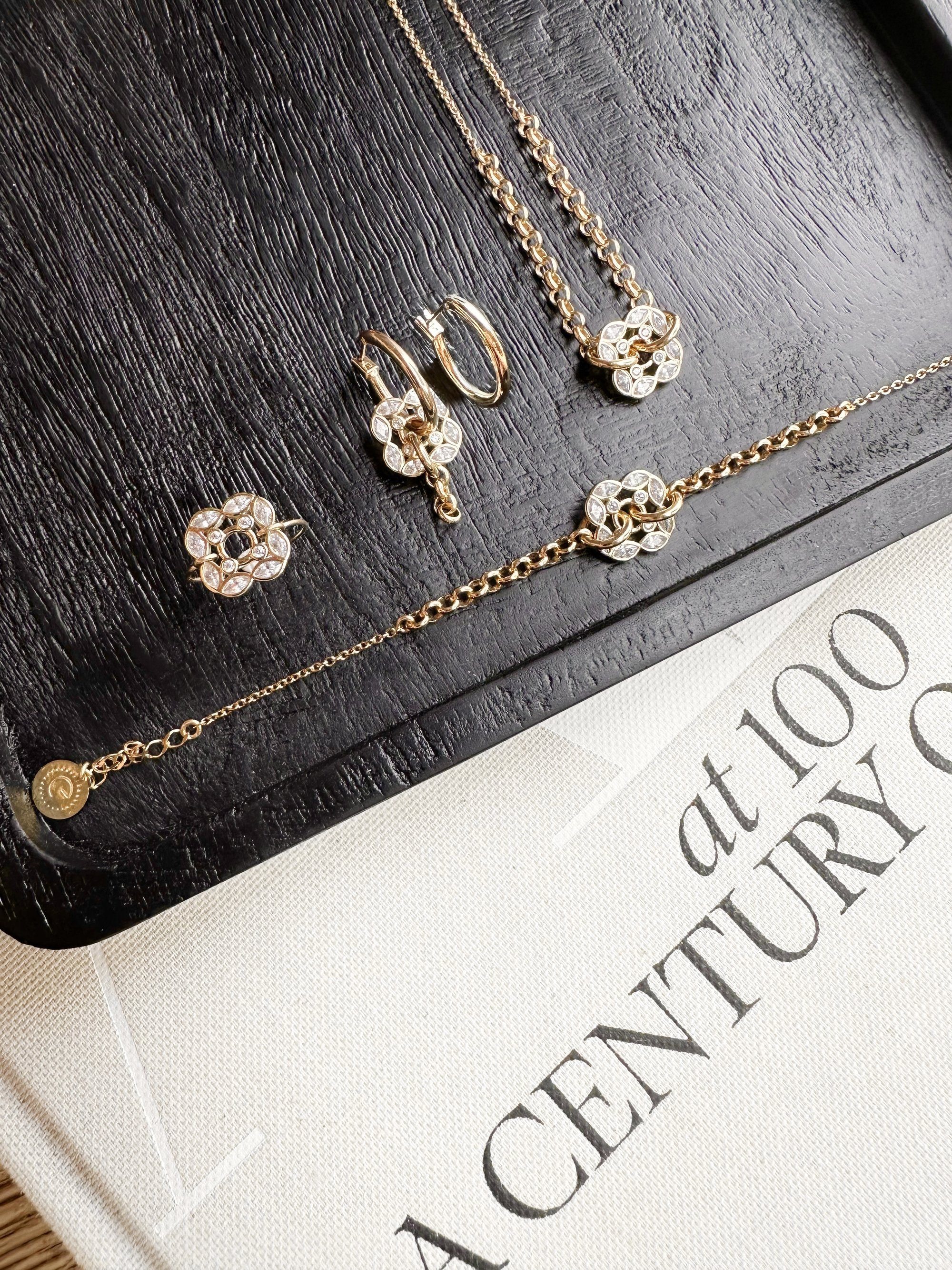 Bague, bracelet, collier, boucle d’oreille, une collection forte et lumineuse, pensée comme une armure délicate pour celles qui avancent avec grâce et intention.